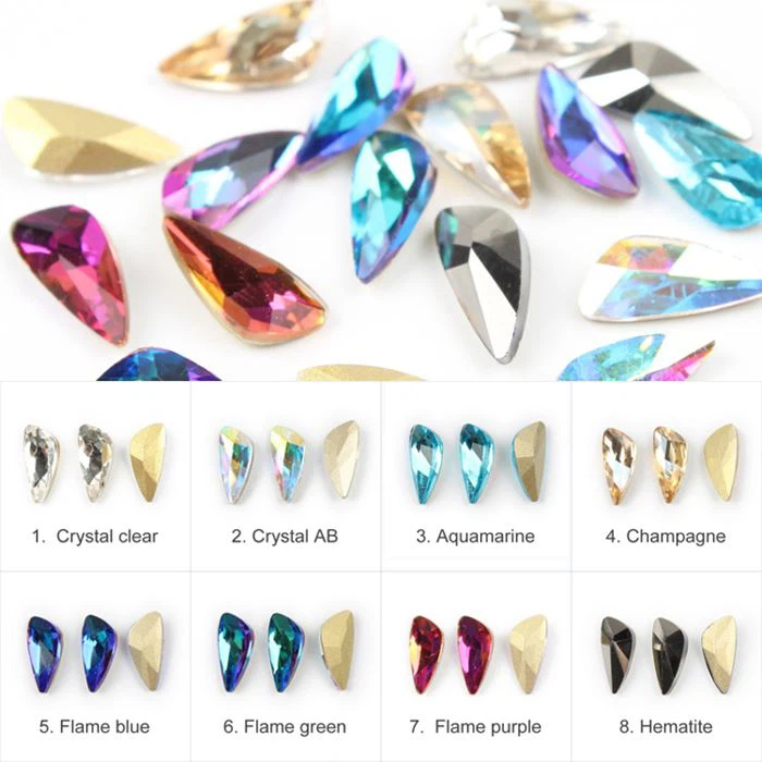 1. Crystal Clear; 2. Crystal AB; 3. Aquamarine; 4. Champagne; 5. Fllame blue; 6. Flame green; 7. Flame purple; 8. Hematite